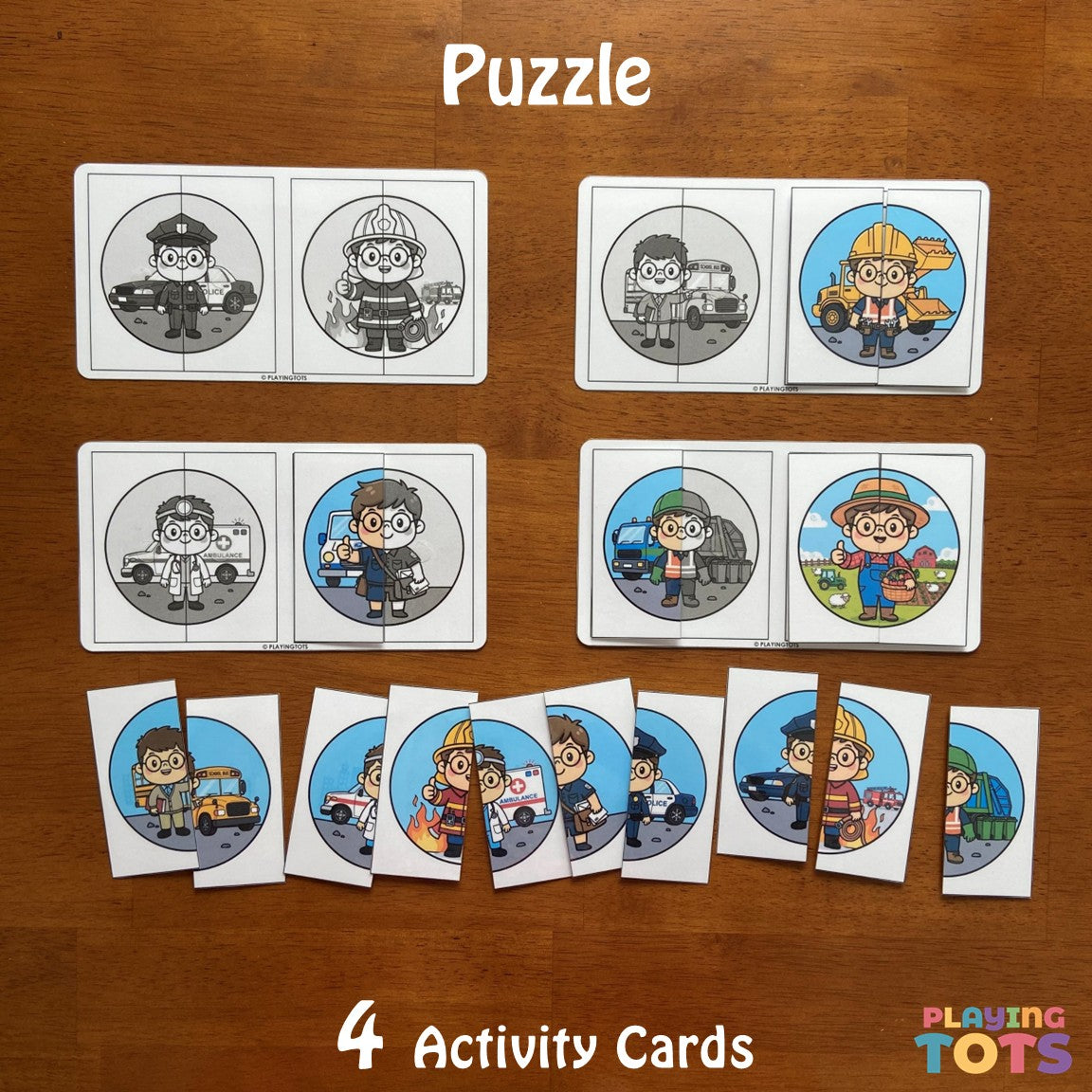 Puzzle Activity Cards, Community Helpers, Busy Bags, Toddlers and Preschoolers, Montessori